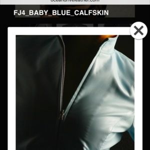 Amazingly soft and supple baby blue calfskin leather jacket with silk lining. This gem is from Ocean Drive Leather, a small but very luxury boutique brand. The jacket retails at $1,400.00 new! This XS size measures Bust: 32 Waist: 26" Total Length: 20.5" Arm Length: 23"
