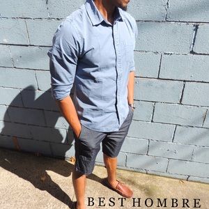 In collaboration with Original Paperbacks, Best Hombre brings you the Nantucket a Dark Indigo Chambray 100% Cotton 10" Short with 18inches in length from waist to the bottom of the clean hem.