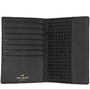 • Passport Holder, durable saffiano leather with leather design • Dimensions 3.5" W x 5.25" H • Gold tone hardware, Gold square logo plate on front, 7 credit card slots inside • NWOT never used