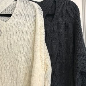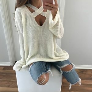 I LOVE sweaters like this for the fall 😍Just enough oversized body to stay comfy & chic! Very soft, higher quality fabric. Criss cross chest, long sleeves that are a tad looser at the wrists with a straight body style and hemline. ✨Double Stocked✨
