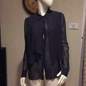 One of my favorite designers Yigal Azrouel Navy blue long sleeve blouse with layered front and button closure.