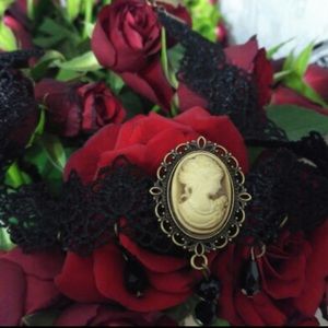 Gorgeous lace choker with a cameo pendant. Chain extender and lobster clasp. New in package.