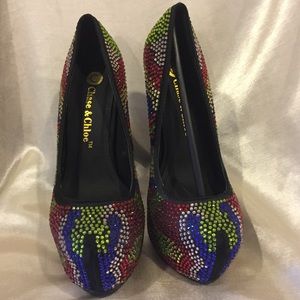 Chase and Chloe Black Multi Color Rhinestone 5.5 Heels NWT Maggie 5-A