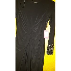 Bracelets of beadwork adorn the wrist of a slicky Vince camuto dress ruched for a beautiful and comfortable fit.. This dress fit like a glove! ☺