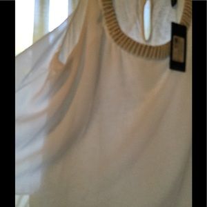 🎀Guess ?? Sheer White Beaded Shell TOP w OVERLAY
