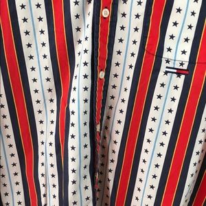 Vtg Tommy Hilfiger Red White Blue Stars Striped Button Up Down Shirt Mens XL patriotic USA 🇺🇸