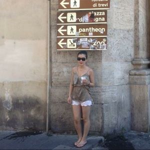 Detail: Olive tunic tank that's breathtaking and light.