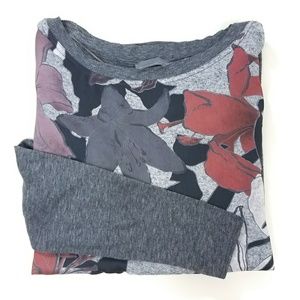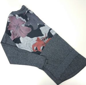 Zara long sleeve jersey top with floral print panel. Loose fit. Lightweight fabric. Approx 23" across chest, 24" long at the front, 26" long at the back, 19" sleeve length. Excellent condition.