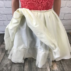 Jun & Ivy Lace Combo Dress. Sweet & feminine, the Jun & Ivy Lace Combo Dress is just in time for your big event. A soft lace bodice is complimented by a pleated skirt with tulle underneath. Style with heels & sparkly jewelry.