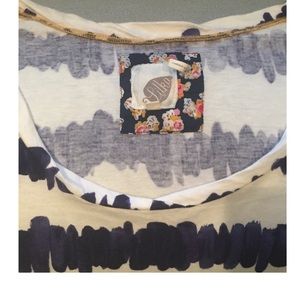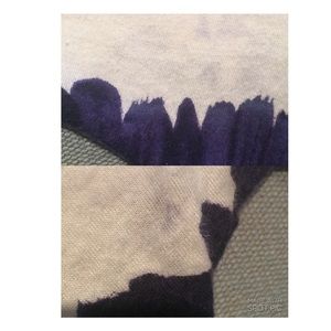 PRICE FIRM:Striped top by Lilka from Anthropologie. Stripes are wavy w/ a painterly effect. Off-white & blue-purple (can read as royal purple). Neckline & shirt cuffs are slightly rolled. Beyond stitching on bottom there's a raw hem. Slightly gathered in back to add some slight structure. A fun top to put a spin on stripes! Last pic shows very faint color bleed after last washing which is not noticeable. 1 spot on back by UA & 2nd darker spot is underneath the UA. For measurements see Commentsβ¬οΈ