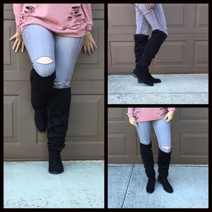 Scrunched boots are all the rage this season no this pair is a must have!! Super comfy vegan suede with a small heel. Pull on style. Bundle and save 10%. Runs true to size. May have to remove from box to ship. Very large shoe box that doesn't fit many boxes.