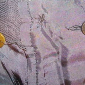 Crossover collarless jacket, chest pocket, concealed pockets, 3 wrists buttons, fully lined. The suit is better looking than the photos.