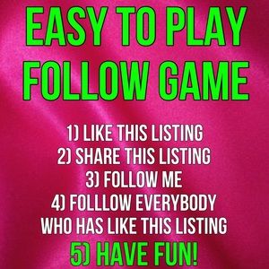 A suggestion! If you redo your sign for followers. Put a million dollar price tag, this way you can lower it by 10% and everyone on the list will get an emai and a Posh messagel!!!! I did this my first time and realized I couldn't contact the followers...just a helpful hint. It's taken me awhile to figure out the little things that help sales. But I love it! Hope I'm a little helpful. Happy Poshing!