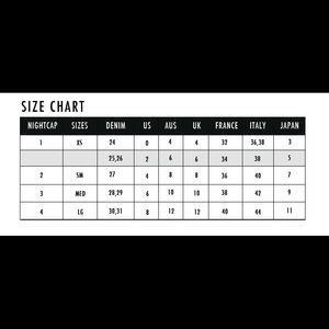Size 3 is US size 6: waist 25 inch inner inseam 34-inches