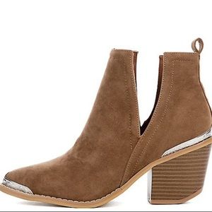 BRAND NEW!! Gorgeous ankle boots with a western-inspired design, etched metal heel and toe caps, and sculptural V-cut sides. Easily bend and mold upper to hold a coveted slouchy shape.