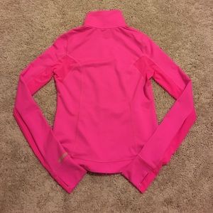 This hot pink ABERCROMBIE &FITCH work out zipped jacket is perfect for looking chic at the gym and running errands! It is equipped with thumb holes, airy sheer material where you need it most (armpits!) and even a slot for your headphones!