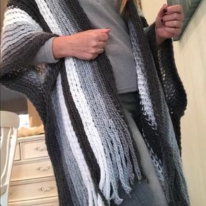 Lovely knit shawl perfect over sweaters, tops and blazers!!! Cali Style fringe. Sewn at arms for better fit! One Size Fits XS to XL