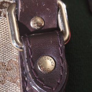 Signature web detail in beige/ebony GG fabric with green/red/green web and brown leather trim. Light gold hardware. Double handles with 4" drop.Adjustable and detachable shoulder strap Zip-top closure.Inside zip, cell phone, and pda pockets. 8 1/2"H x 13"W x 7"D Made in Italy. because of the nature and value of item I will be shipping insure USPS with signature confirmation required.