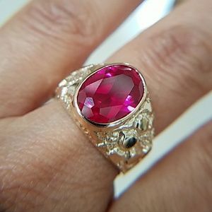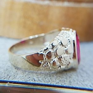 @bertkilgore Large 14k Solid Yellow Gold Wedding Nugget Synthetic Ruby Ring Available in sizes 9 through 15