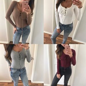 โจ3RD RESTOCKโจSuch an easy basic. Flattering, slimming and non-sheer. Ribbed fabric. Adjustable lace up front that can hang loose or be tied in a bow. Pair this under any cardigan or by itself for a girls night out! I personally kept this BS in every color & love them ๐