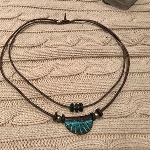 Necklace 16" leather/Mykonos copper w/greenSOLD