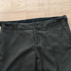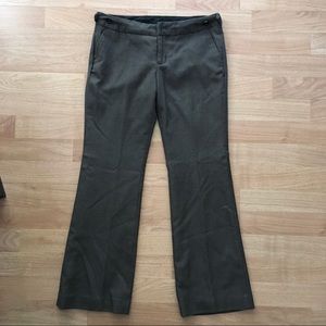Banana republic dress pant in a dark brown color with lighter brown speckles. Pants are lined and super warm for winter weather and has 4 pockets. Leg shape is fitted at thighs and slightly flared at the bottom a bit beyond a straight leg. Perfect work pants!