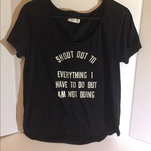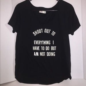Black Cotton & Polyester Black Hollister T-Shirt size medium. "Shout out to everything I have to do but am not doing". Worn once. Very comfortable and loose. Pet and Smoke free home.