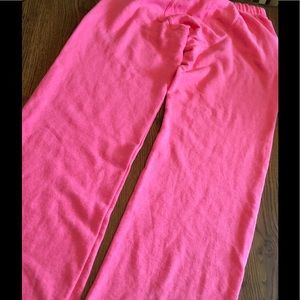 Pinkish coral color with orange logo on chest and hip, worn once. EUC hoodie is a large, pants are Small