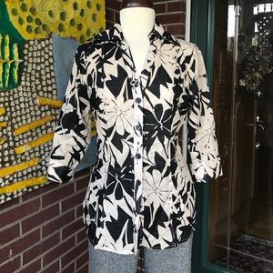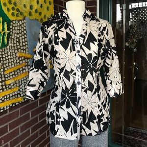 Gorgeous linen blend button down top from Harvé Benard. Amazing print. Perfect for fall. Pair with casual pants with your comfortable loafer or mules. Beautiful in person. Like new condition.