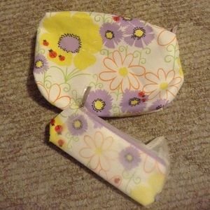 This cute pair of bags have ladybugs and varied flower designs throughout. Both bags still have plastic on the Clinique branded zipper pulls. No markings inside or out. Small bag also still has originally packaged tissue paper on it. Pic 3 is inside large bag & pic 4 is inside of small bag. Check out all the other Clinique listings in my closet too!