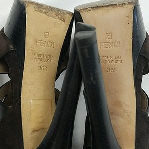 Fendi women 6.5 brown velvet platform peep toe pumps cutout detail Italy, Some scratches on the platform, no box or dust bag.
