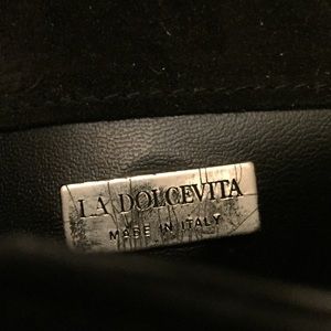 🎉Host Pick🎉 NWOT La dolcevita black suede cross-body/satchel. Made in Italy. Was never used. In mint condition. Long strap can be adjusted to any length. Measures 7.5"x7" and expands to 1.5"