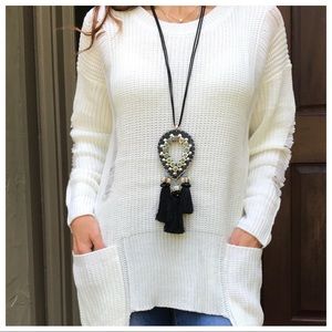High low chic pocket sweater shredded dress loose fit measurements for bust laying flat on one side S 23 M 24 L 25 length S 28/43 M 29/44 L 30/45