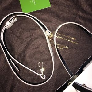 Kate spade small Elodie bag. Detachable strap makes it cross body ready. Smooth cream leather with black leather interior. 14k gold plate & feet. Good condition.
