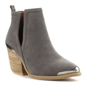 BRAND NEW!! Gorgeous ankle boots with a western-inspired design, etched metal heel and toe caps, and sculptural V-cut sides. Easily bend and mold upper to hold a coveted slouchy shape.