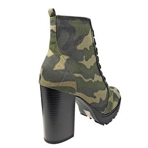 Military Camo Lug Sole High Heel Combat Boots