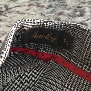 HURLEY HOUNDSTOOTH LONG SHORT size 7 junior or 4 in women's, red Hurley emblem 3 side pockets, a belt tab for a hanging wallet or watch, size 7 or a size 4 in women's. I know these are priced high, it’s only because I love them and don’t want to sell them for any less, but I have had them so long, and my closet is so full. ;)))