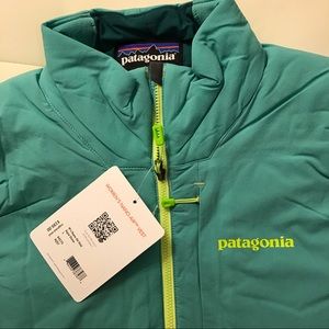 Center-front zipper has wicking interior stormflap and zipper garage at chin