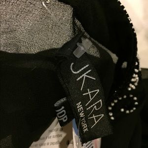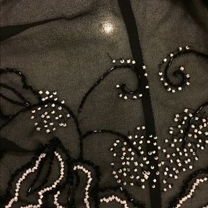 NWT beautiful beaded JKARA sleeveless top and jacket set. Top (size M) has back zip closure, and the sheer, open front jacket (size 10) drapes beautifully and has unique, asymmetrical cuffs. PLEASE NOTE: both pieces have some missing or loose beads, but extra beads are included with the tags for both pieces! Please also note that the inside tag on the jacket has come off, only attached by the plastic tag piece, and this has caused a tiny hole in the delicate fabric (see photos).