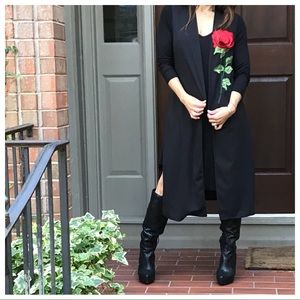 From my buying trip in Paris my most favorite piece from my purchases is this fabulous vest it’s unique stylish and chic open style with floral appliqué and side slits looks fabulous with anything