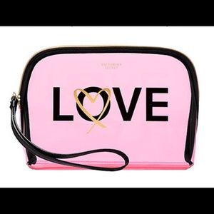 ❌SOLD❌This is a brand new, in package Victoria's Secret Makeup Bag. It has LOVE written on the front. It's a clear, pink material. It's super cute and a great size! It measures 9"x6"x2".