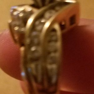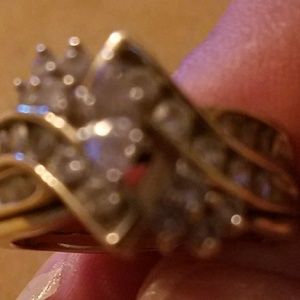 1/4 kt center marquise stone with several round diamonds, 14 kt solid gold set (soldered together)
