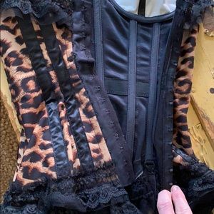 AUTHENTIC TRASHY LINGERIE LA LOS ANGELES BRAND LEOPARD STRUCTURE PUSH UP LACE UP BACK CORSET COSTUME COSPLAY 32C $$$