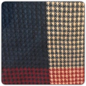 Look gorgeous & stay warm this season in this beautiful plaid waffle knit blanket scarf. Makes a great gift. Burgundy, navy, tan & cream 100% acrylic with frayed hem. 79” x 28”
