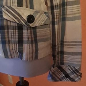 Maurices Jacket (women's),100%cotton, color white, blue and gray, hood blue