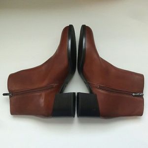 So stylish and on trend! Sam Edelman Joey Cognac Leather Stacked Heel Zip Up Ankle Boots