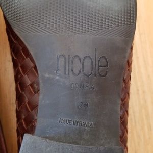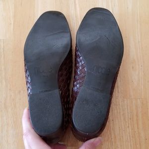Brown low heel woven loafers. Comfortable and nice dress shoe great for work. Small spot on heel I am going to try to fix. Genuine leather.