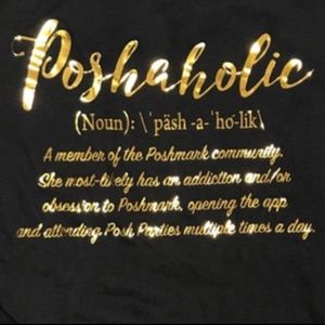 Hey POSHBOSS! Seller? Buyer? Just love Posh? This one's for you Beautiful gold foil print. Unisex fit - true to size with a loose fit. No trades. "A member of the Poshmark community. She most likely has an addiction and/or obsession to Poshmark, opening the app, and attending Posh Parties multiple times a day." If I am out of your size, please comment with your size. I am doing a restock soon!