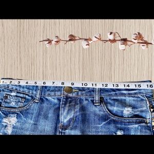 FreeStyle | Studded Distressed Frayed-Hem Denim Mini Skirt.