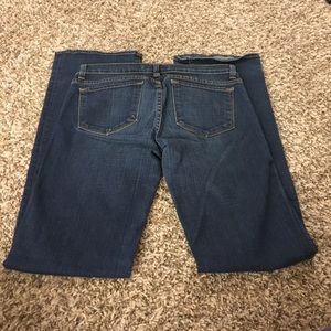 The boot leg J Brand Jeans. In very good condition. Size 30. 98% cotton and 2% spandex. 16" waist and 33" inseam. Offers are welcomed! Bin 1B.